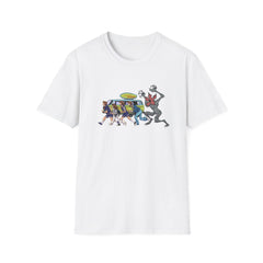 BOO! Jinkies! Zoinks! Grab this parody mystery gang shirt showcasing your favorite detective teen group!